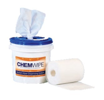 A disposable wiper and bucket cleaning system that allows end-users to add their own chemical to create a custom pre-moistened wipe. The MIGHTYWIPE® material, made from a cellulose and synthetic base, has excellent strength and absorbency with low lint properties, providing an ideal material for heavy-duty cleaning, wiping, degreasing and surface prep.