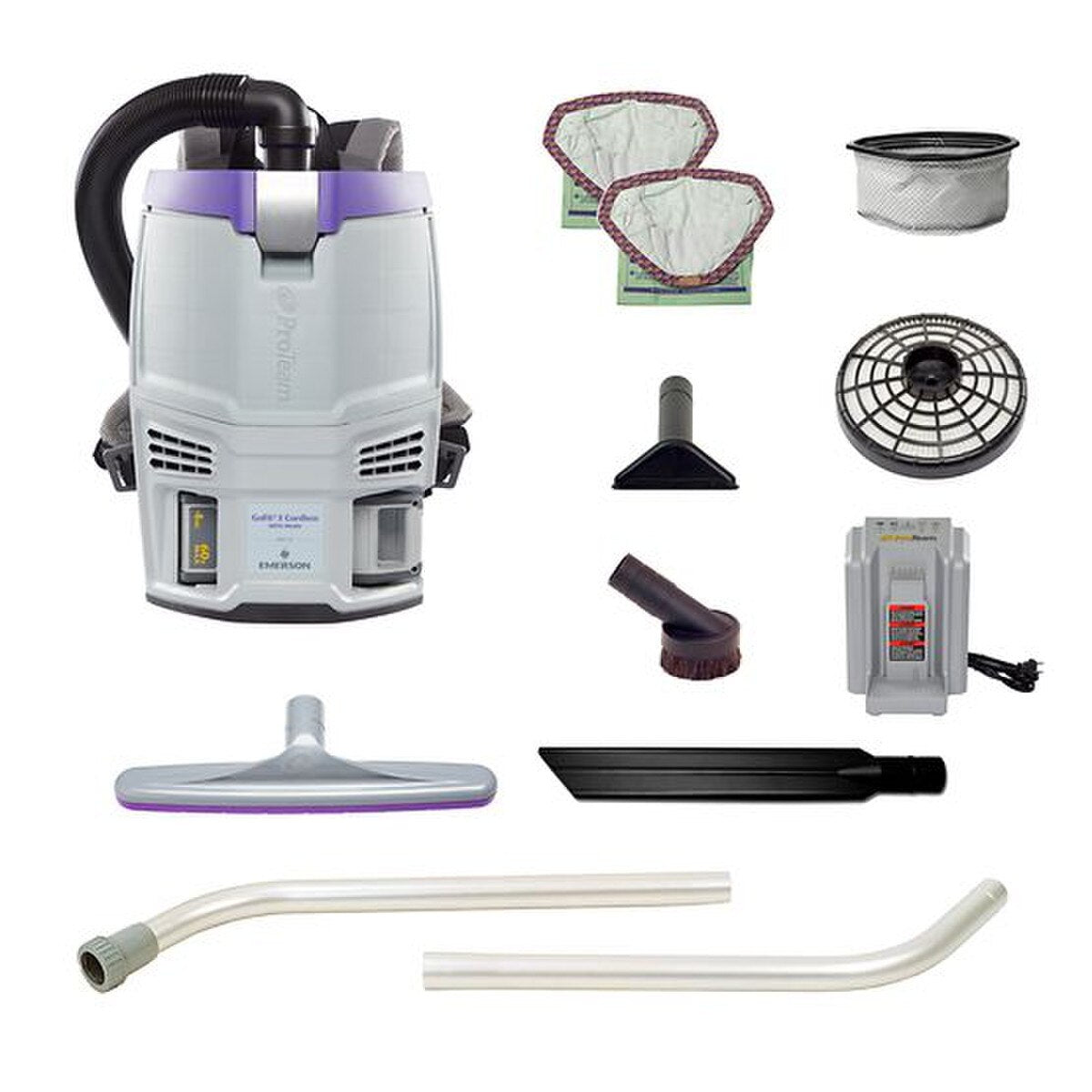 Experience cordless efficiency, long runtimes and customized cleaning with ProTeam’s GoFit 3 Cordless backpack vacuum. Cordless vacuuming allows you to safely go wherever you need to go to get the job done and increase your productivity by 30% compared to corded backpack vacuums. The smallest addition to ProTeam’s newly launched GoFit Cordless series, the 3 qt. weighs a total of 12.8 lbs. with the 4Ah battery installed, so it’s a great option for those with smaller frames or new to backpack vacuums. Use the high/low power switch to control the power setting and enjoy an extended runtime of approximately 51 minutes on low setting and approximately 39 minutes on high. Feel customized comfort with the 4-step quick-adjust FlexFit harness designed to be easily adjusted with no tools required. This cordless backpack vacuum cleaner has advanced multi-layered ProLevel Filtration with HEPA Media that reduces allergens in the air while a brushless motor prevents carbon dust. Clean hard-to-reach areas and maneuver quietly around obstacles with the 3 qt. that includes top-quality ProTeam accessories – the Xover Multi-Surface Two-Piece Wand Tool Kit (107098): 56" two-piece button lock wand (101338), 14" Xover multi-surface floor tool (107016), 17" crevice tool (100108), 3" dust brush (100110), 5" upholstery tool (100115), plus 2 filter bags (107666), 4Ah battery (107683) and charger (107685). 3 year warranty on parts and labor, 2 years on motor, battery and charger. Use filter bags open collar (107666) or closed collar (107667).