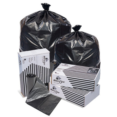 Combines the economy of LLDPE resin with the strength of a star seal, while the black color provides the maximum opacity required to hide unsightly refuse. The result is a reasonably priced bag suitable for a wide range of uses. Top quality resins. Maximum film strength. Puncture and tear resistant. Leak-resistant star seal. Wide range of strengths and sizes. Packed for easy stacking and storage.