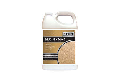 MX 4N1 is specially formulated high performance product composed of low foam detergents, sequestering agents and water soluble solvents. Formulated to provide maximum cleaning action in hot and cold water extraction units without leaving residue behind. Meets the highest standards in carpet extraction maintenance. Approximately 80% of all soils and greasy substances are caused by foot traffic and over half are of a greasy nature. Safe on all synthetic carpet fibers. Does not contain any optical brighteners. This product is an extraction cleaner that cleans the carpet fibers more thoroughly than any product on the market today. This product is most effective on carpets that have been previously treated with a mill-applied fluorochemical stain-resistant treatment. Vacuum carpet thoroughly. Test carpet for colorfastness in an inconspicuous area before any method of cleaning.