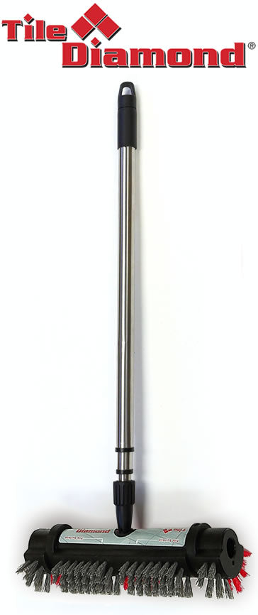 CLEANOVATION TILE DIAMOND BRUSH WITH HANDLE CWP Diamond Tile Grout Red and Gray Brush With Handle CD1202. Save time and money by utilizing one tool to clean both tile and grout. Patented red diamond bristle pattern is designed to deep clean grout valleys. Gray bristles clean tile surface and scuff marks on flat and uneven surfaces. The Tile Diamond is lightweight, durable, with a customizing telescopic handle and 10 inch Cleaning head allows brush to work its way into tight areas. Color: Red and Gray. 10 Inch Cleaning Head. 30 inch x 60 inch Telescoping Handle. Nylon bristles. Manufacturer Part Number: CD1202 CS-80221